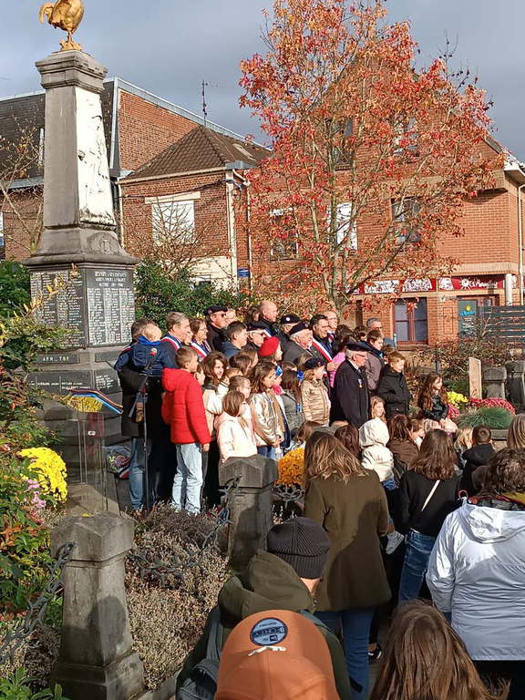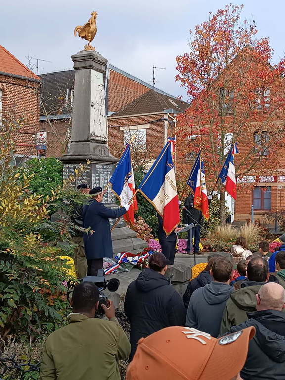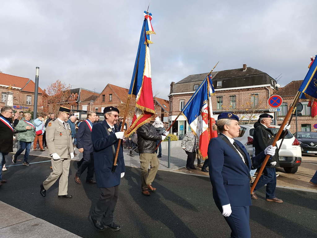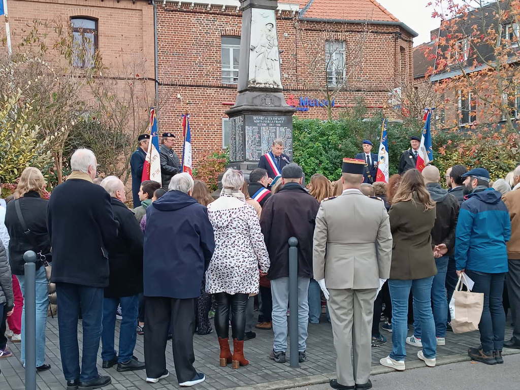 Une dèlègation des mèdaillès du travail ètait prèsente lors de la commèmoration du 11 novembre 2023 au monument aux morts à Beuvry